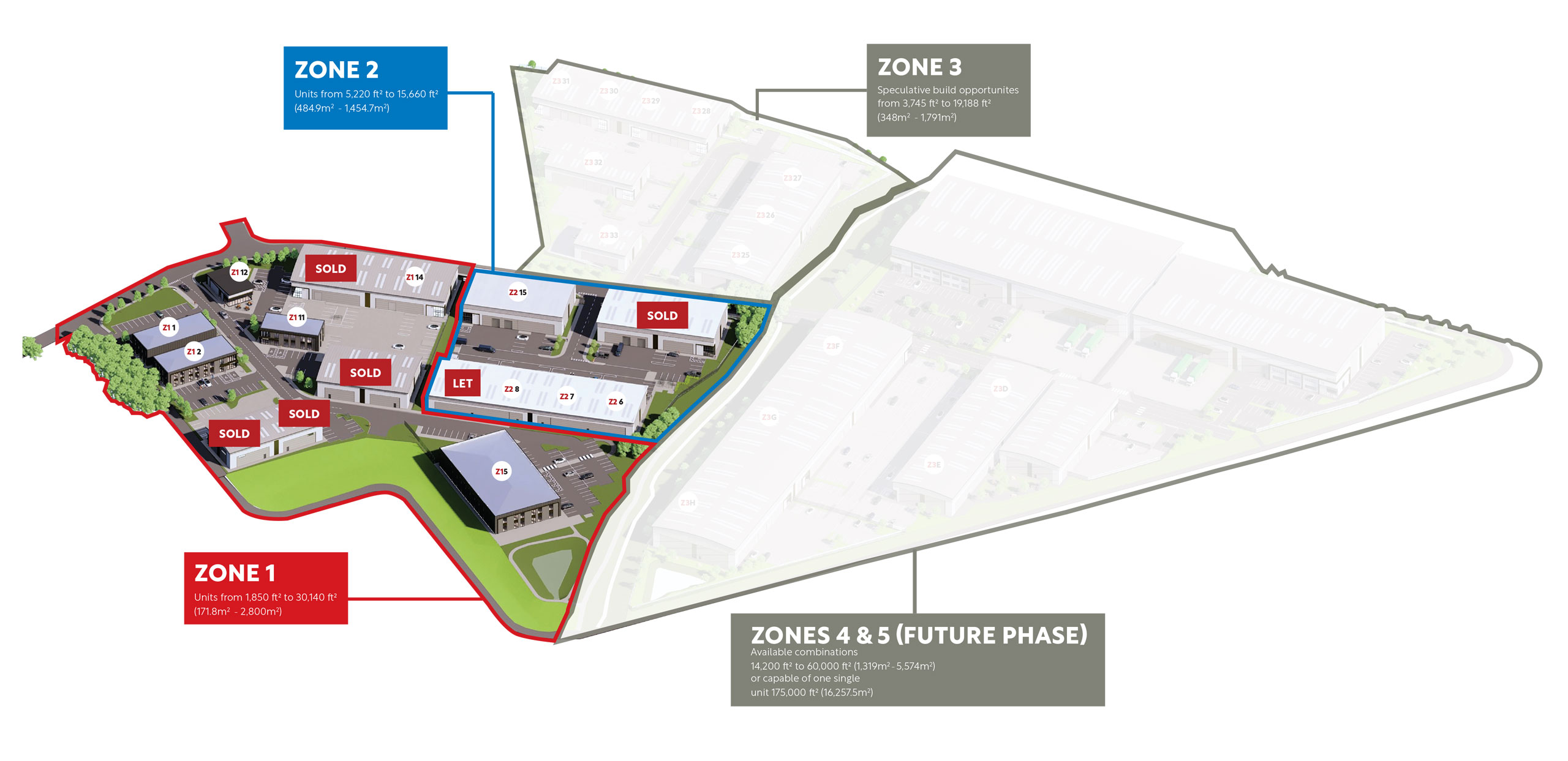 | Z1 | Unit 5 | 30,140 ft² | 2,800 m² | For Sale |